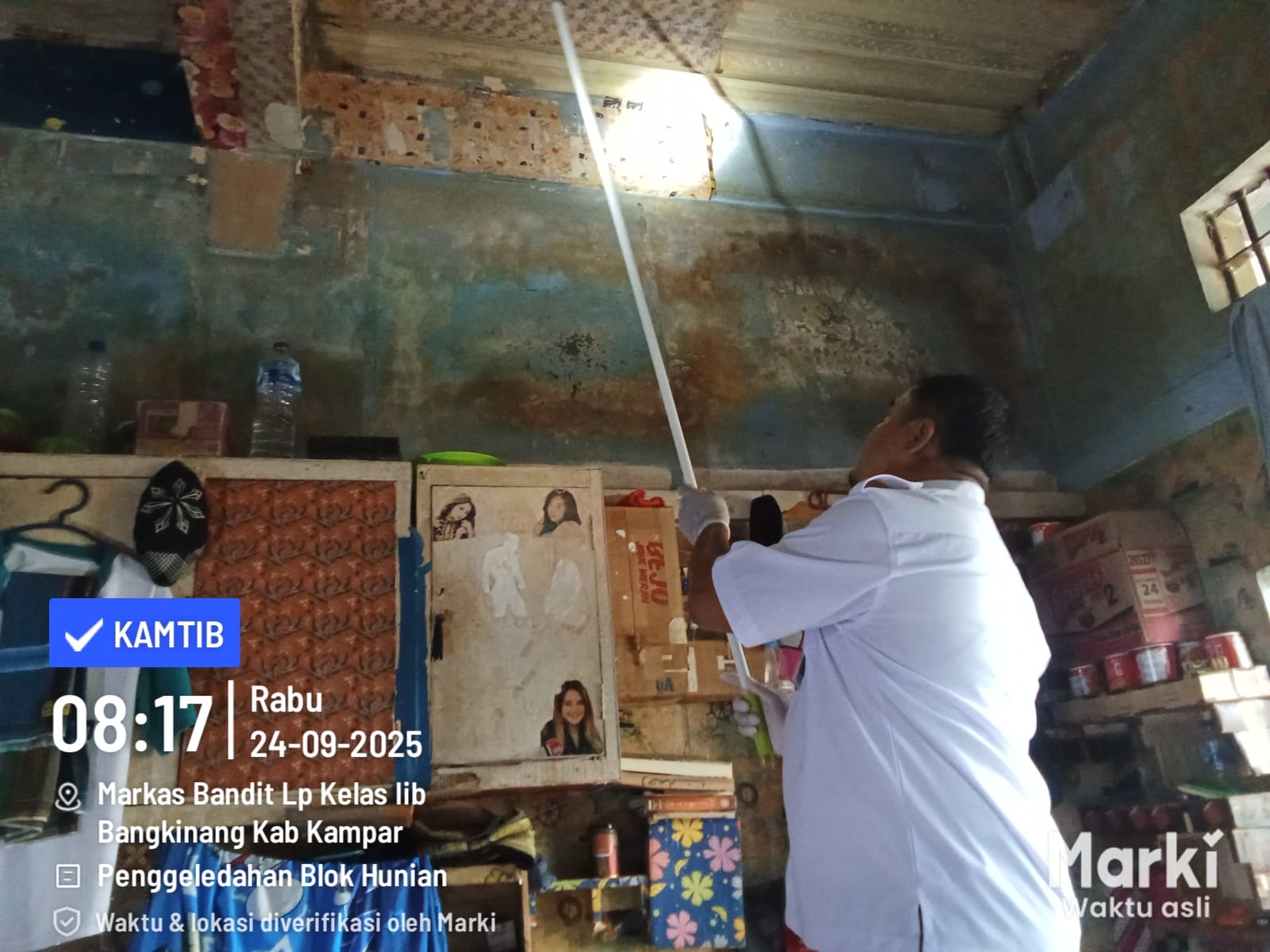 Setiap sudut kamar hunian diperiksa dengan seksama untuk memastikan tidak ada benda terlarang yang dapat mengganggu keamanan.