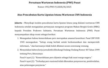 “PWI Pusat mengapresiasi keputusan pengembalian kartu pers tersebut. Ini adalah bentuk komitmen pemerintah untuk menjaga hubungan yang sehat dengan insan pers serta memastikan tidak ada hambatan dalam kerja-kerja jurnalistik,” ujar Munir dalam keterangannya.