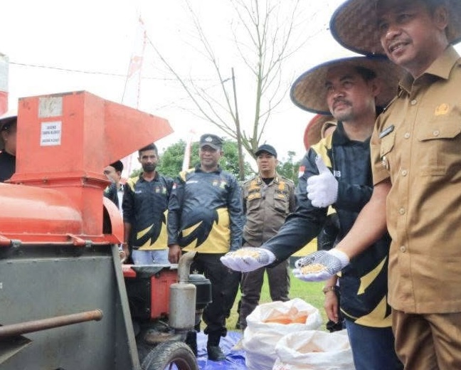 Panen jagung tersebut merupakan bagian dari program ketahanan pangan Polri. Kapolsek Perhentian Raja Iptu Feri Padhli Peri menjelaskan, jagung ditanam di lahan seluas 1,3 hektare dengan masa tanam 106 hari dan produktivitas mencapai sekitar 8 ton per hektare.