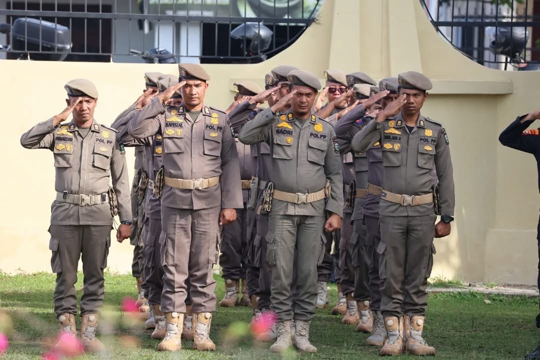 Kegiatan tersebut dipimpin langsung Kapolres Kampar  AKBP Boby Putra Ramadan Sebayang, S.I.K., Apel tersebut juga diikuti oleh perserta satu peleton dari personil Satpol PP Kampar.